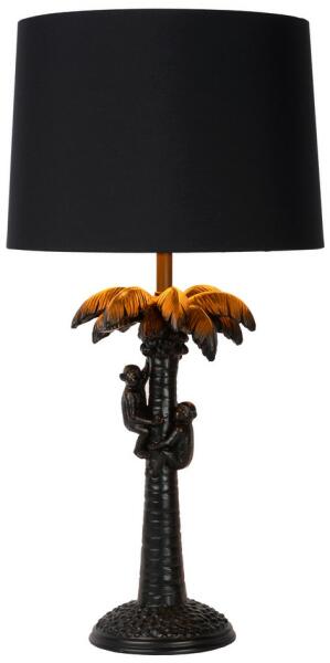 Extravagáns asztali lámpa, egy kis játékossággal. A klasszikus megjelenésű szövet lámpaernyő alatt két csimpánz látható, amint felmásznak egy pálmafára. Az egyik lelkesen kókuszdiót szed, míg a másik, kisebb majom elismerően figyel. A lámpa E27 foglalatta. .