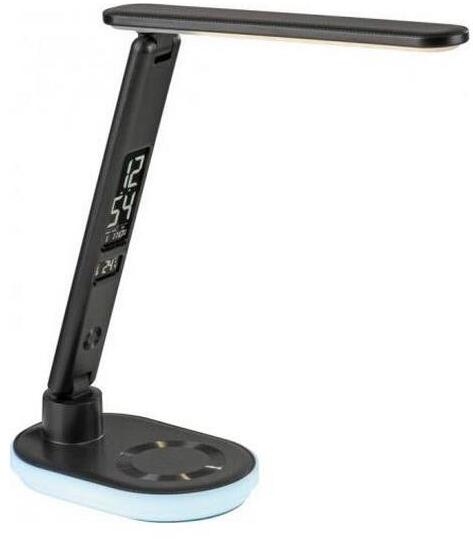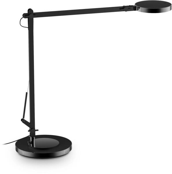 Fekete színű alumínium és fém vázas íróasztali lámpa több ponton dönthető karral és fejjel, beépített LED fényforrással. A lámpa érintőkapcsolós fényerőszabályzóval rendelkezik.
