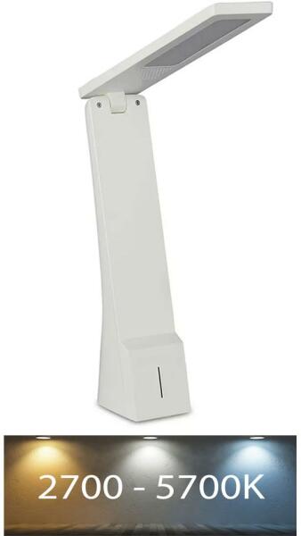 Akkumulátoros asztali LED lámpa 4 Watt teljesítménnyel, nagy (90°-os) sugárzási szöggel. A lámpatest elején a V-TAC márkajelzés alatt találunk egy függőleges csíkot, tulajdonképpen ez az érintőgomb , amellyel vezérelhetjük, ki-bekapcsolhatjuk a lámpát. Mindemellett egy kék fényű visszajelző LED -et takar, amely szép fénnyel világít az asztali lámpa bekapcsolt állap