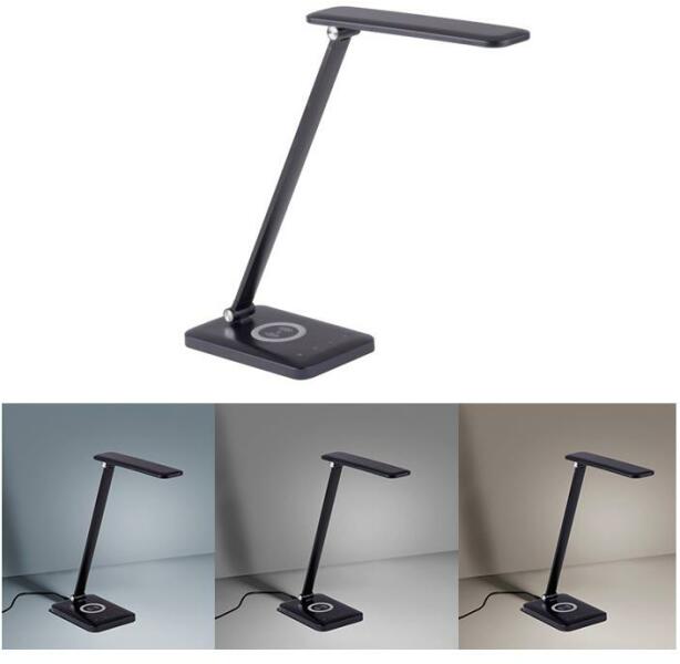 LED asztali lámpa érintős fényerő vezérlővel. Világítás színbeállítása: 3000–5000 K. A lámpa vezeték nélküli töltést kínál az ezzel a funkcióval rendelkező telefonokhoz. Az alap USB-porttal rendelkezik. Irodák, dolgozószobák stb. megvilágítására alkalmas.