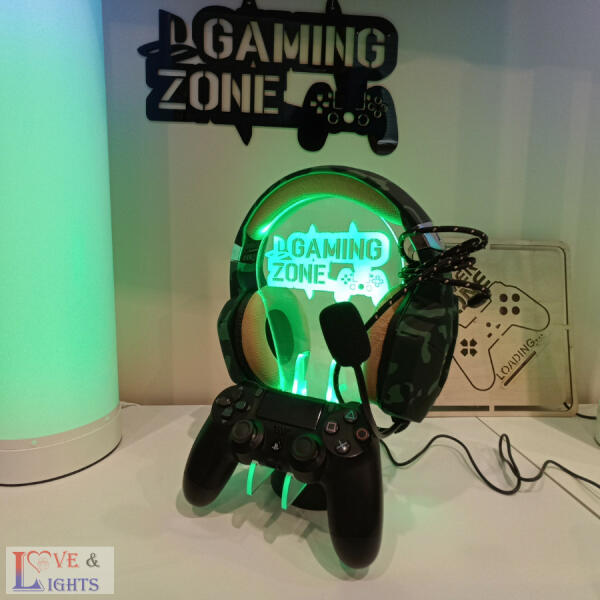 Gamerek asztaláról nem hiányozhat, egy kontroller és fülhallgató tartó állvány, melyen ps vagy xbox konzoljaikat tárolhatják. Személyre szabva is rendelhető, így gamertag különböző színekben világíthajtja be a szobát. Ps / xbox kontroller és fülhallgató tartó állvány, mely különböző szíenkben világít, és akár a saját gamertagunk lehet belegravírozva a lámpá