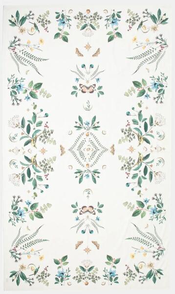 Termék részletek- Az Oeko-Tex® Standard 100 tanúsítvánnyal rendelkező anyag garantálja, hogy az ezzel jelölt textiltermékek mentesek az emberre és a környezetre káros és potenciálisan veszélyes anyagoktól. - Mintás pamut szövet. - Minta növényi és állati motívumokkal. - Méretek: 150 x 250 cm.