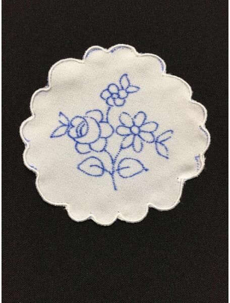 Termék részletek10 cm átmérőjű, kör alakú, szegett szélű (cakkozott), előrajzolt, hímezhető kis terítő, alátét. Az előrajzolt kézimunka a legrégebbi múltra visszatekintő, hagyományos magyar hímzésfajta.