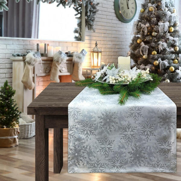 A piros foltálló asztali futófelület minden asztallapon egyedi benyomást kelt. Szép és sima tapintású, ezüstszállal szőtt hópelyhek díszítik. Ez egy kiváló ajánlat azok számára, akik szeretik a merész színeket és elrendezéseket.
