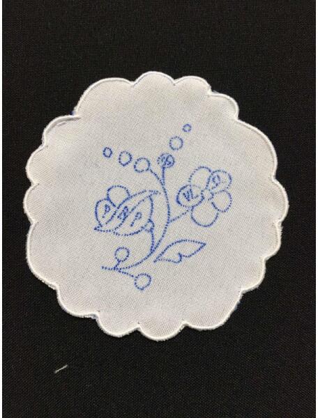 10 cm átmérőjű, kör alakú, szegett szélű (cakkozott), előrajzolt, hímezhető kis terítő, alátét. Az előrajzolt kézimunka a legrégebbi múltra visszatekintő, hagyományos magyar hímzésfajta.