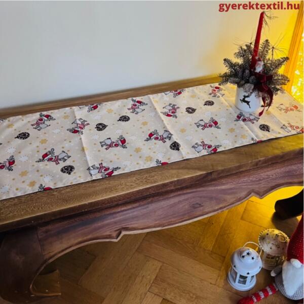Ünnepi terítő Anyaga: 100% lakástextil . Mérete: Többféle méretben készítjük, hogy mindenki igénye szerint tudjon választani (DE! egyedi kérés esetén is keress minket bátran) 35*100 cm 35*170 cm 65*65 cm 135*135 cm 135*200 cm 40 °C-on mosógépben mosható, vasalható. Szárítógépben nem javasoljuk a használatát.