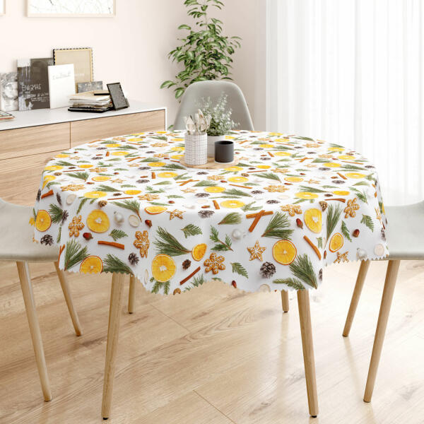 Teflonos folyadéktaszító damaszt asztalterítő Méret: 140x140 Anyagösszetétel: 100%poliészter Az elemi poliészter szálakat a svájci DuPont cég által gyártott teflon bevonattal látják el, mely hatására a folyadék a terítőn golyószerűen összeáll, így a friss folt nedves törlőkendővel egyszerűen eltávolítható.