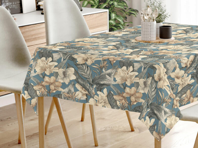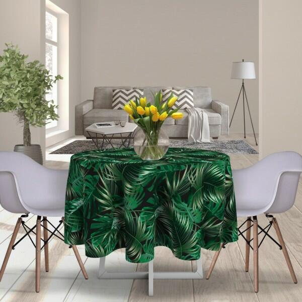 Az új nyomtatott alátétkollekció kerek abrosza strapabíró és puha tapintású poliészter anyagból készült, kompakt panama öltéssel, amely szépen illeszkedik az asztallapra. A kör alakú terítő 2 cm-es hajtású.