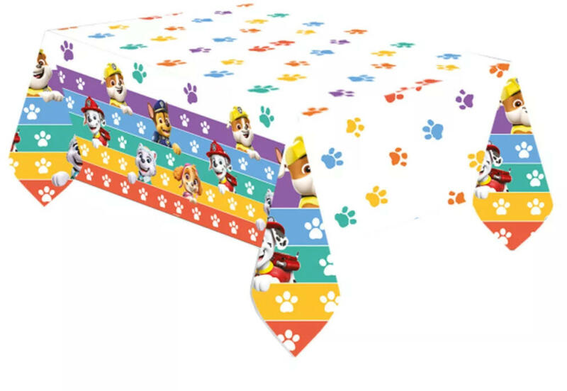 Paw Patrol, Rubble, Marshall, Chase és Skye mintás asztalterítő Ha szeretnél egy tökéletes bulit szervezni, akkor nem hiányozhat az asztalterítő sem! Dobd fel a parti asztalt, és indulhat a buli. Anyaga: műanyag/eldobhatós/lemosható Mérete: 120 x 180 cm