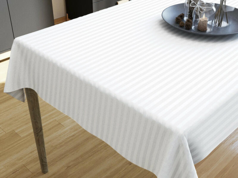 GINKO fehér impregnált modern asztalterítőA GINKO fehér impregnált modern megújult külsővel egy igazi kiválóság az asztalterítők között. Hogy miért? Természetes összetételű termék, hiszen 70%-ban pamutból készült! Speciális felületkezelésének köszönhetően bármilyen szennyeződés azonnal, egy vizes szivacs segítségével eltávolítható róla. Szépen eldolgozott