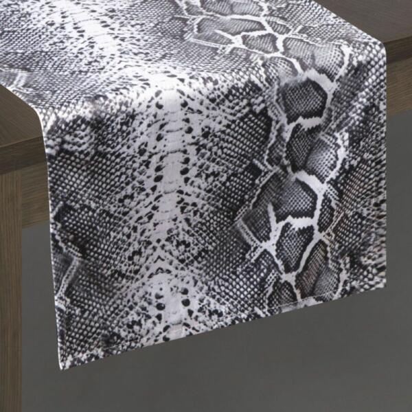 Asteya asztalterítő puha bársonyszövetből kígyóbőr motívummal készült, hogy egy kis egzotikusságot vigyünk a belső térbe. Az asztalterítő tökéletes és az eredeti minta pedig kiemeli egyedi divatott, stílust. Kombináld az Asteya kollekció többi darabjával!
