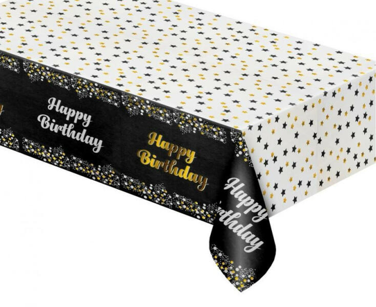 Happy Birthday Black asztalterítő Mérete: 137x183 cm Anyaga: fólia