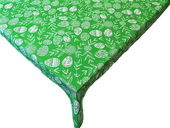 Húsvéti hímes tojás mintás gyönyörű négyzet alakú asztalterítő - abrosz zöld alapszínen. Kiváló minőségű pamut asztalterítő, amely 100% - ban pamut alapanyagból készül. A terítő jól megtartja alakját. Négyzet alakú asztalterítő mérete: 75x75 cm 40 fokon mosható.