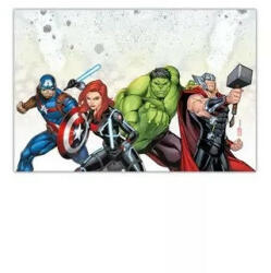 Avengers, Amerika kapitány, Thor, Hulk mintás asztalterítő Ha szeretnél egy tökéletes bulit szervezni, akkor nem hiányozhat az asztalterítő sem! Dobd fel a parti asztalt, és indulhat a buli. Anyaga: papír Mérete: 120 x 180 cm