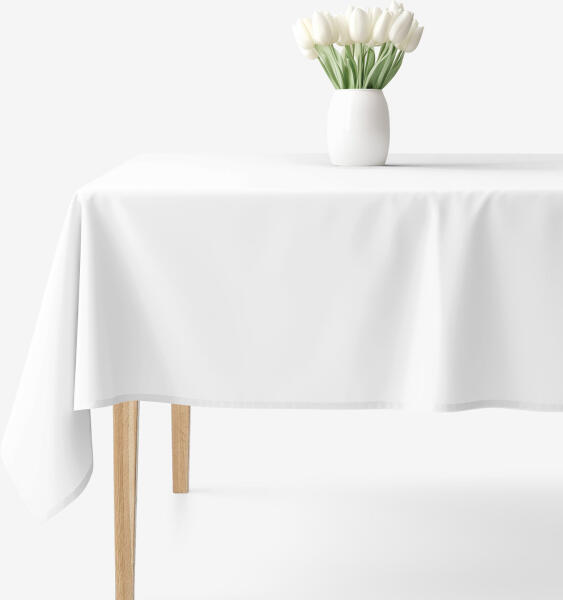 Terítő, matt, fehér szövet, mérete 140x170 centiméter.