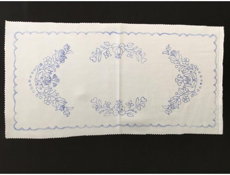 30*60 centiméteres (szegés, cakkozás után 26*56 centiméteres) előrajzolt, hímezhető terítő. Az előrajzolt kézimunka a legrégebbi múltra visszatekintő, hagyományos magyar hímzésfajta.