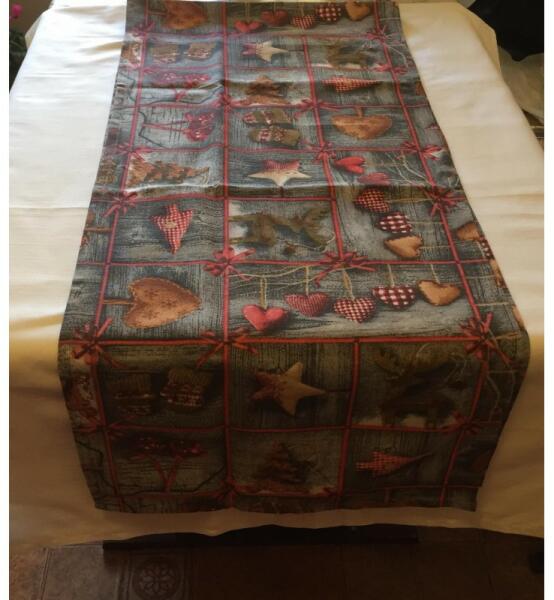 Ünnepi szarvas mintás, 40*180 centiméteres, pamutvászon asztalterítő. Alapanyag: 100% pamut. Nem avatott. Mosás: 40 Celsius fokon