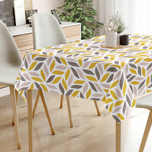 LLEDO impregnált modern asztalterítőA LLEDO levélmintás impregnált modern megújult külsővel egy igazi kiválóság az asztalterítők között. Hogy miért? Természetes összetételű termék, hiszen 70%-ban pamutból készült! Speciális felületkezelésének köszönhetően bármilyen szennyeződés azonnal, egy vizes szivacs segítségével eltávolítható róla. Szépen eldolgozott