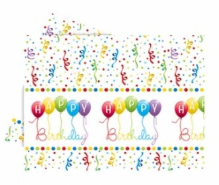 Szülinapi bulikhoz ajánlott asztalterítő vidám mintával ellátva. Színezi a szobát, védi az asztalt. Szülinapi bulikhoz ajánlott asztalterítő vidám mintával ellátva. Színezi a szobát, védi az asztalt. Mérete: 180 cm x 120 cm. Anyaga: műanyag.