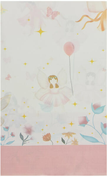 Tündérekkel díszített papír asztalterítő , mely praktikus lehet családi összejöveteleken, kerti partikon, gyerek zsúrokon vagy éppen céges rendezvényeken. Előnyei közé sorolható, hogy használat után eldobható, így nem kell a foglalkozni a mosással és tisztítással, és persze nem kell izgulni a foltok miatt sem. TIPP: a party kezdetén rakj filctollat vagy zsírkrétát az