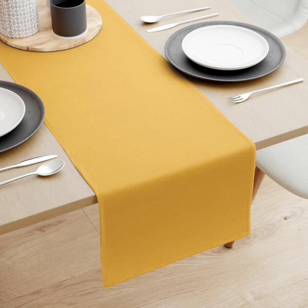 A Mapelor Asztali futó egy stílusos és praktikus megoldás, amely tökéletesen illeszkedik bármilyen étkező környezethez. Az élénk narancs szín és az egyedi, új szövetszerű textúra lehetővé teszi, hogy a mindennapi étkezések során otthonossá varázsolja a teret. Ez a 40 cm széles és 48 méter hosszú asztali futó enyhén vízálló, így hatékony védelmet nyújt az aszta