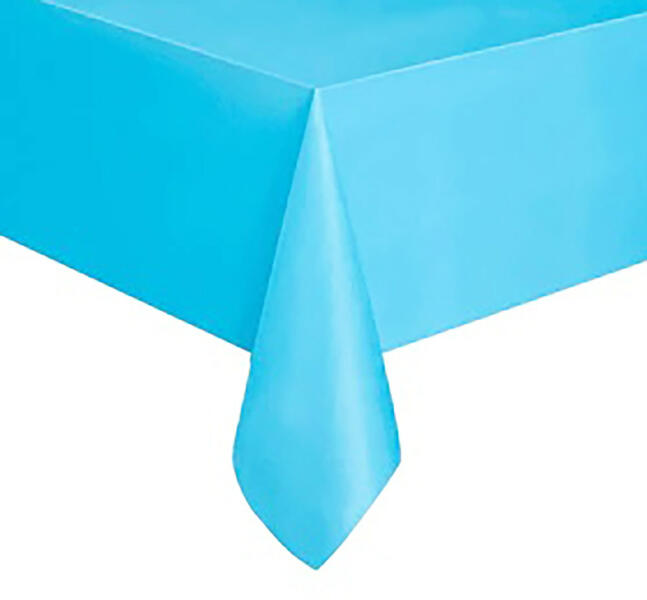 Műanyag, textil hatású, világos kék színű asztalterítő , mellyel bármelyik születésnapi party-t feldobhatjuk. Anyagának köszönhetően többszőr felhasználható, és egy nedves ronggyal pillanatok alatt tisztítható. Tulajdonságok: Anyaga: műanyag Az asztalterítő mérete: 137 cm × 274 cm