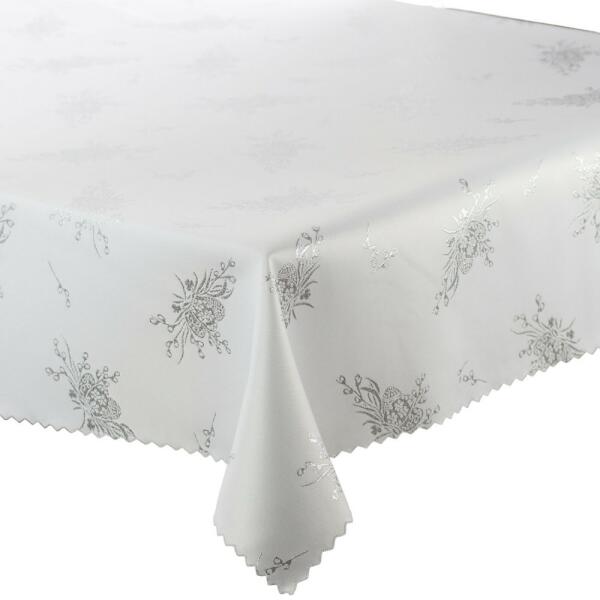 Gyönyörű kétoldalas húsvéti asztalterítő ezüst - fehér színben tojáscsokor mintával. Mindkét oldala használható - kétféle színben! Foltálló bevonattal rendelkezik, ezáltal a kiömlő folyadék könnyen felitatható róla! Mérete: 130x160 cm. Alapanyaga 100% műszál. 30 fokon mosható, alacsony hőmérsékletű vasalóval vasalható - szükség szerint.