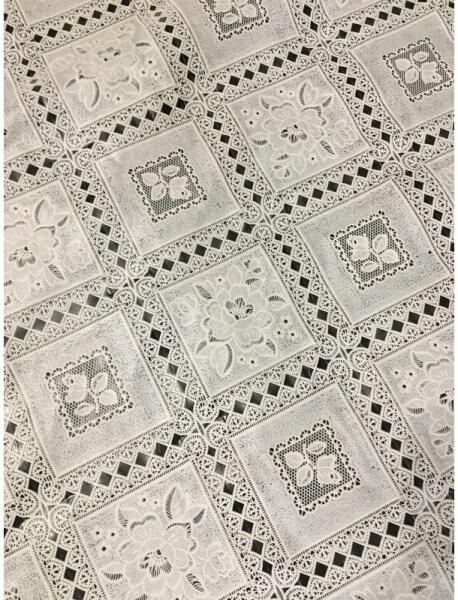 Átlátszó alapon fehér csipke mintás viaszos vászon. Könnyen kezelhető, egyszerűen csak letörölhető, viaszos vászon anyagaink nemcsak a lakosság, de a közintézmények körében is népszerűek. Óvodákba, bölcsödékbe, iskolákba, kifőzdékbe, büfékbe, pizzériákba, "menzákra", konyhákba is kiváló választás. Szegést nem igényelnek. Elsődleges felhasználási terület