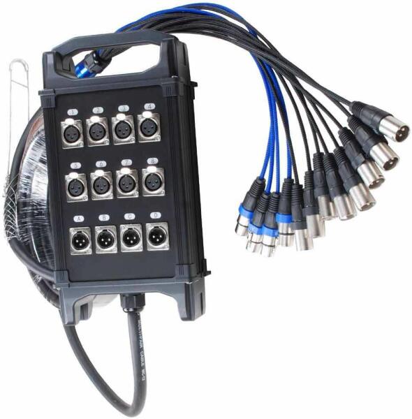 Műszaki adatok: - 12 csatorna (8 oda, 4 vissza) - 15 méter csoportkábel - A doboz extrudált alumínium profil és ABS kombináció - Kényelmes fogantyúval ellátva - A legyező kifejtési pontját fém burkolat védi - A legyező minden szálát kábelvédő harisnya erősíti - Acél tehermentesítő a csatlakozók védelmében - Súly: 5,83 kg Termékleírás: Thunder EX-SB084K15 Stage Box