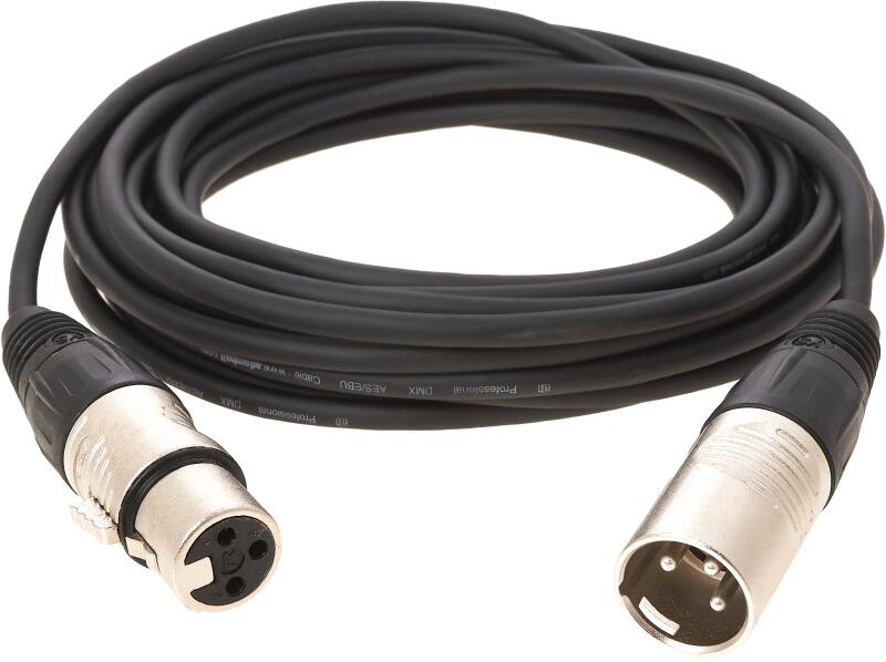 Konnektor 1: 3-pin DMX (M), Konnektor 2: 3-pin DMX (F), Típus: DMX kábel, IP lefedettség: Nem, Szín: Fekete, Kábelhossz: 20,0 m, Gyártás helye: Kína,