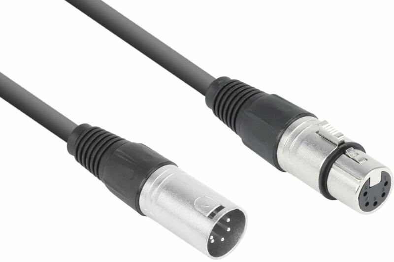 Műszaki adatok: - 5 tűs XLR (XLR5) mama - 5 tűs XLR (XLR5) papa - Hossz: 3m - Professzionális felhasználásra - Profi minőségű dugók, fekete gumírozott kábel - Kábelkötözővel együtt szállítva! - Árnyékolás: 60 x0.1mm - Kábel külső átmérő: 6,3 mm - Ellenállás: 120 Ohm Termékleírás: Professzionális felhasználásra 5 tűs XLR csatlakozóval szerelt kábel (A DMX 512-