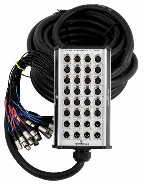 Az SGBX20-2408 egy professzionális csoportkábel 24db 3 pólusú panelen rögzített XLR mama + 8db 3 pólusú panelen rögzített XLR papa aljzattal...