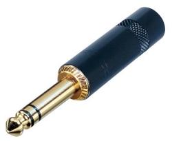 6,3-as sztereó jack dugó fényes, hosszú fekete fémházzal, aranyozott érintkezővel , 6 mm átmérőjű kábelhez - REAN by Neutrik