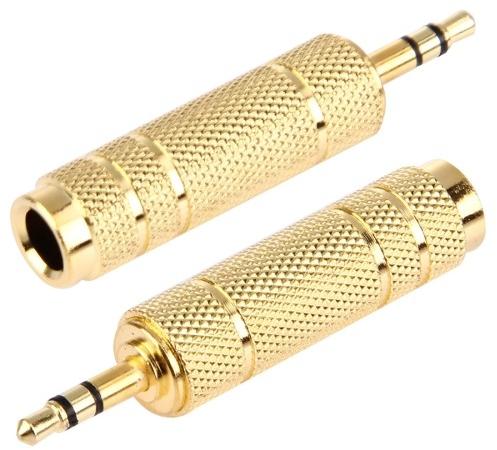 3.5mm sztereo JACK dugó - 6,3mm sztereo JACK aljzat adapter. Jellemzők: - Anyag: fém aranyozott - Dugó-aljzat - Dugó kivitel: JACK 3,5mm sztereo - Aljzat kivitel: JACK 6,3mm szetero Minimum rendelhetö mennyiség: 5db Az ár 1db-ra vonatkozik!