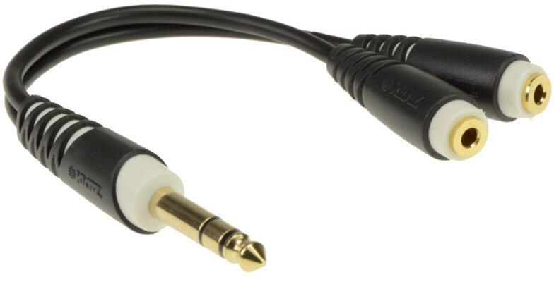0,2 méter hossz PVC kábelborítás 1x 6,35 sztereó jack - 2x 3,5 jack aljzat csatlakozók Aranyozott érintkezők ...