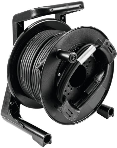 Cable reel with DMX cable Schill cable reel, black For long cable runs High-quality DMX cable Adheres to the DMX standard USITT DMX-512/1990/-A Highly flexible Electric cable with good shielding Robust version For building DMX controlled lighting systems, LED spotlights etc. Built with NEUTRIK connector Made in Germany