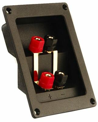 94 x 73 mm belső nyílású, 108, ill. 81 mm-es furattávolságú ABS lapra szerelt 4 db piros vagy fekete műanyag burkolatú, aranyozott banán aljzat. Az aljzat tengelyén 6 mm2-es kábel, a végén pedig banándugó fogadására alkalmas furattal, a belső oldalán aranyozott forrfüllel.