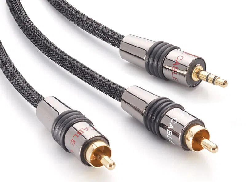 rugalmas AUX-csatlakozó kábel 3,5 mm -> 2 x RCA kiváló minőségű feldolgozott tömör fém dugó a fekete fonott köpeny finom, időtlen dizájnt kölcsönöz a kábelnek kettős árnyékolás a külső interferenciák ellen