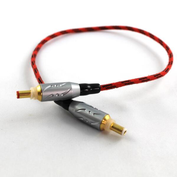 TÖMÖR! UP-OCC réz vezetőkkel jó minőségű aranyozott DC csatlakozókkal szerelve piros pamut bundában. Az árnyékolás litze réz háló. Csatlakozó méretek: 5,5/2,1mm másik fele 5,5/2,5A termékből csak 1db van!