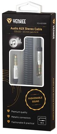 SZTEREÓ AUDIÓ AUX SPIRÁLKÁBEL 3,5MM-ES JACK CSATLAKOZÓVAL ÉS SZÍNES FÉMCSATLAKOZÓVAL. SPECIFIKÁCIÓ: Csatlakozó 2 x 3,5 mm sztereó (csatlakozó - csatlakozó típusú) Hossza 1,8 m (KIHÚZVA)