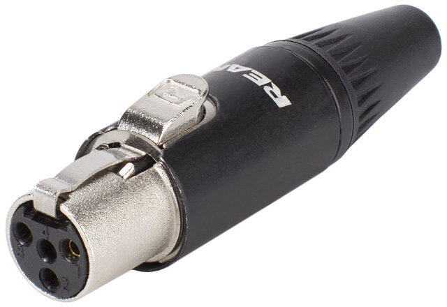 4-pólusú TINY (mini) XLR mama lengő kábelcsatlakozó, fekete fémházzal, aranyozott érintkezőkkel...
