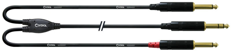 6,0 m, REAN csatlakozó 6,3 mm sztereó arany / 2 x csatlakozó 6,3 mm mono arany - rövid copfos oldal
