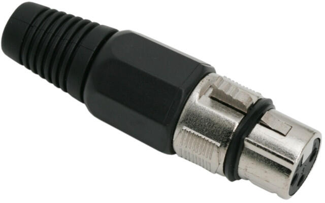 XLR aljzat 3 pólusú szorítópofás törésgátlóval XLR 3 tüskés minőségi mikrofoncsatlakozó, amely könnyen használható maximum 7 mm-es kábelekig. Fém kivitel Szorítópofás törésgátlóval "APA" csatlakozó Szín:Fekete / Nikkel