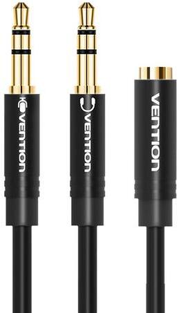 Audio cable 2x 3.5mm 0.3m Vention BBUBY black This compact audio cable is equipped with two 3.5mm male plugs and one 3.5mm female plug. It allows you to connect headphones to your computer or laptop, providing greater convenience and the ability to play games or conduct online meetings freely. With a length of 0.3 meters, this one is not only functional, but also compact and easy to carry. Solid c