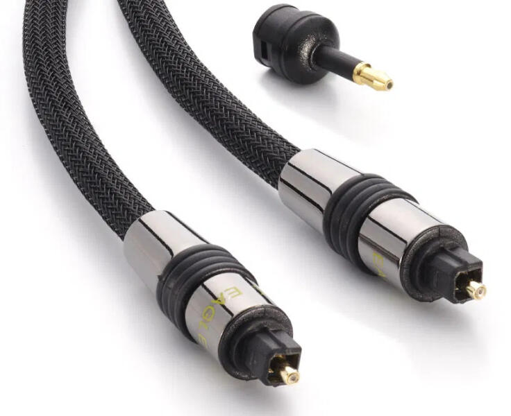 Nylon vezető a max. vezetőképesség érdekében szabvány Toslink dugókkal 1 darab mini jack adapterrel Dugó fémházban PVC + fonott szigetelés