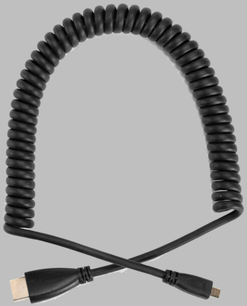 Caruba HDMI - MicroHDMI spirál kábel. 1080p HDMI Micro-HDMI kábel. Használható digitális audio- és videóeszközökhöz. Összeköttetést biztosít a MicroHDMI és a szabványos HDMI portos eszközök között, mint például PC, laptopok, táblagépek, digitális videorekorder, fényképezőgép, digitális HDTV, plazma TV, LCD TV, projektor, DVD-felvevő, DVD-lejátszó és más eszköz