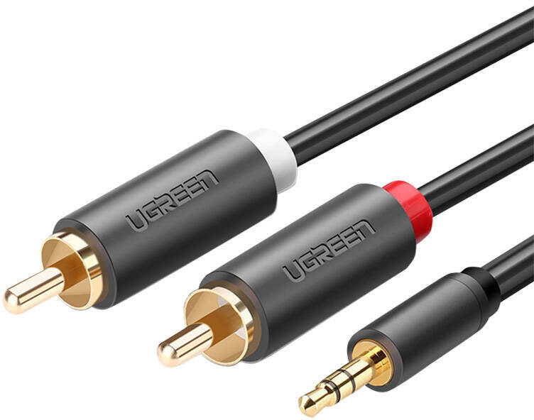 Ugreen AV102 10510 kábel 3.5 mm mini jack (férfi) / 2RCA (férfi) csatlakozókkal, 2 m hosszú - fekete. Csatlakozzon a zene világához és élvezze a legmagasabb minőségű hangot. Az Ugreen AV102 analóg audiokábel lehetővé teszi telefonja, okostelefonja vagy más eszköze összekapcsolását audio berendezéssel, például erősítővel vagy aktív hangszórókkal. Az egyik oldalon 3.5 m
