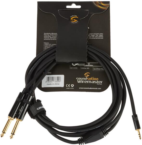 Kábelhossz: 3,0 m, Konnektor 1: 2x Jack TS 6.3 mm - egynes (M), Konnektor 2: Jack TRS 3.5 mm - egyenes (M), Típus: Összekötő, Szín: Fekete, Gyártás helye: Kína,