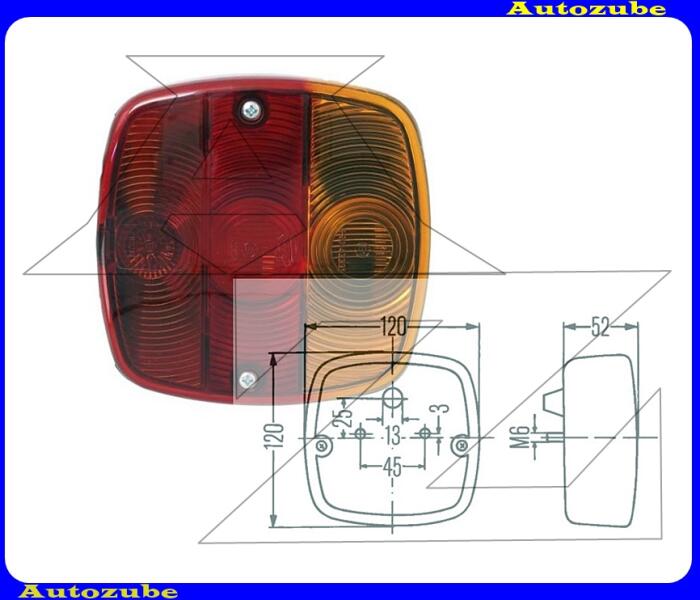 Utánfutó Univerzális Hátsó lámpa 3F "120x120mm" (Hella) Eredeti alkatrész