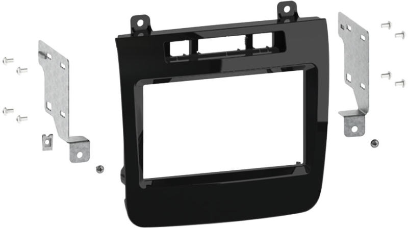Volkswagen Touareg II dupla DIN autórádió beépítő keret rögzítő fém fülekkel. A beépítő keret átalakítja a gyári rádió, műszerfal kialakítását úgy, hogy lehetővé tegye a gyári rádió cseréjét univerzális szabvány 2 DIN méretű fejegységre. Kiváló minőségű német ACV gyártmány.